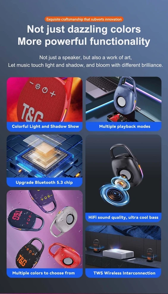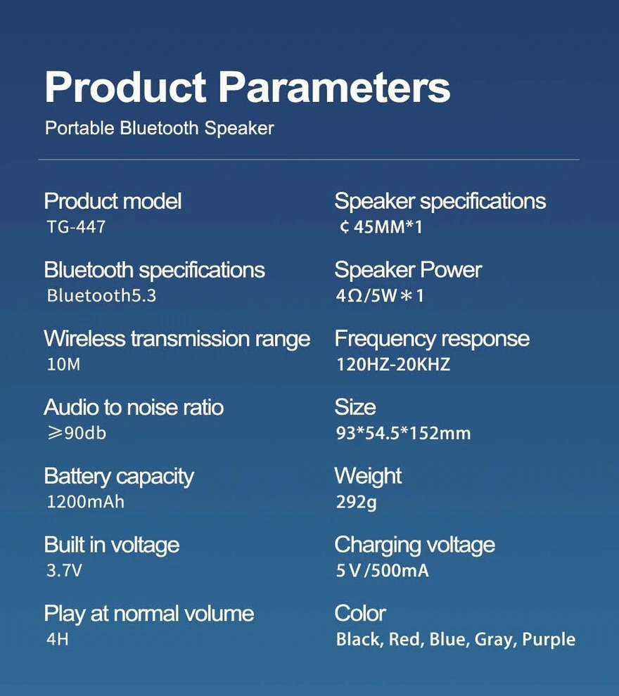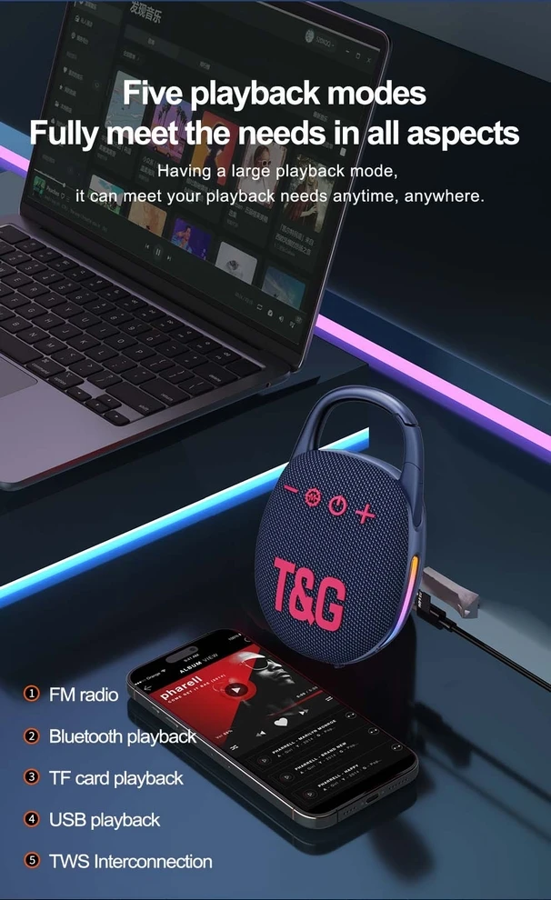 Speaker TG447 Portable Bluetooth5.3 Speakers HiFi Sound Quality TWS Interconnection Suport FM Radio TF Card Playback Low Latency