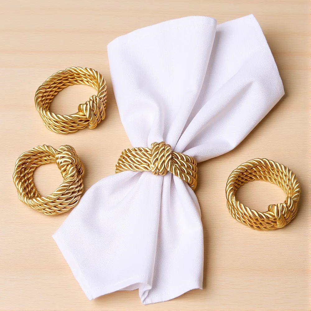 Material de alta qualidade: Feitos de fibra de poliéster, esses prendedores de guardanapo são duráveis. A fibra de poliéster garante que os prendedores mantenham sua forma e aparência ao longo do tempo, resistindo ao uso e manuseio regulares.